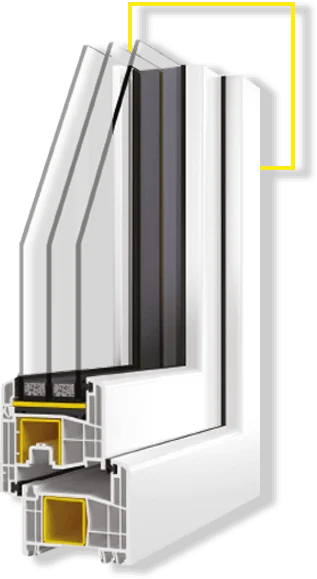 - Profili in PVC con struttura a 6 camere e profondità di installazione pari a 74 mm. Grazie alla classe di alta qualità, forniscono un buon isolamento termico e acustico.