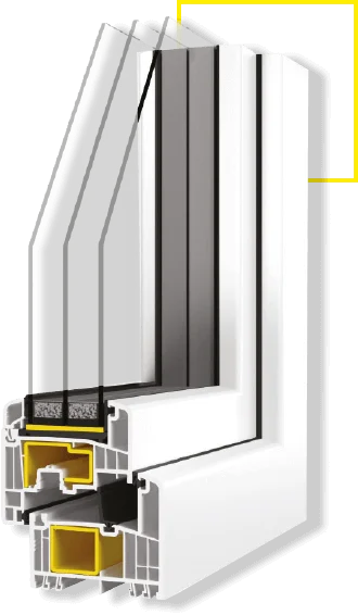 1Profili realizzati in PVC di alta qualità con una profondità di costruzione pari a 83 mm e una struttura a 6 camere. L’uso di plastica con una composizione appositamente selezionata garantisce un’elevata durata ed efficienza energetica.