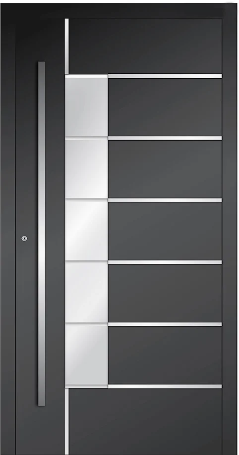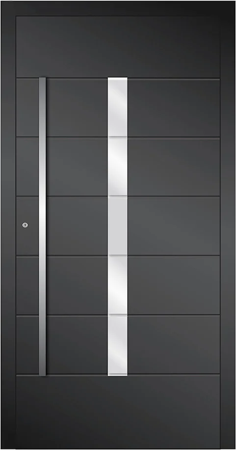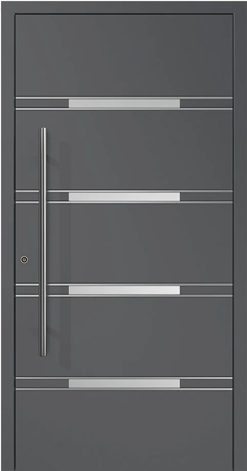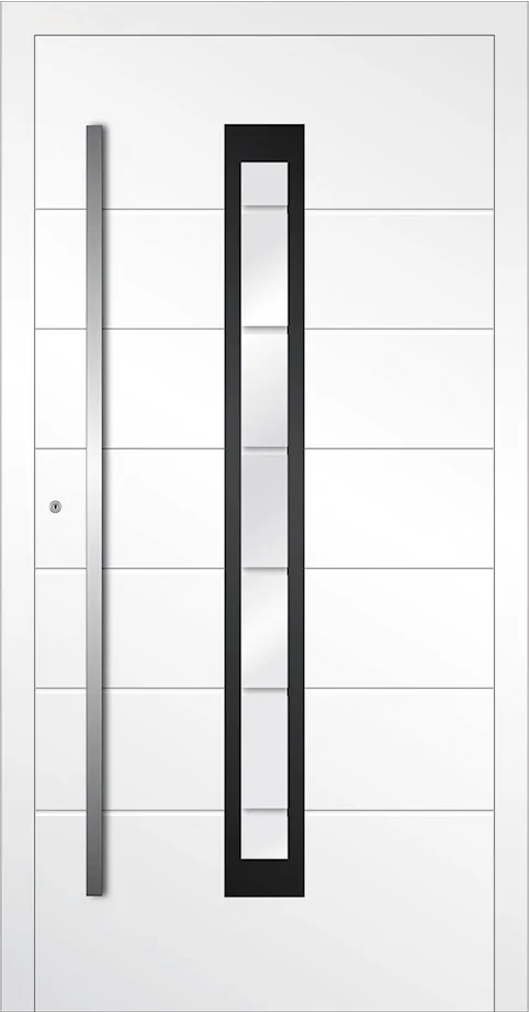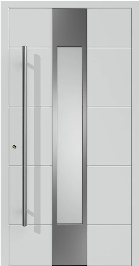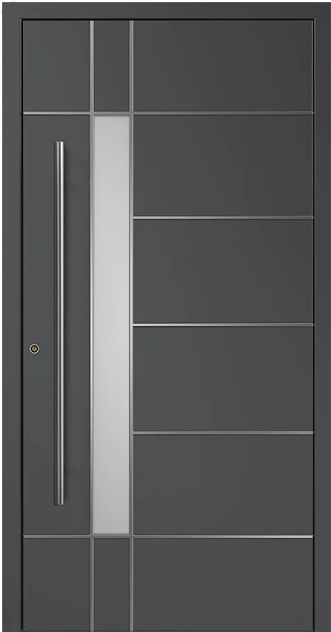 Porta esterna in alluminio Passiv 0+ con protezione termica maggiorata, Elevato coefficiente di isolamento termico a livello di Ud = 0,43 W/(m2K)