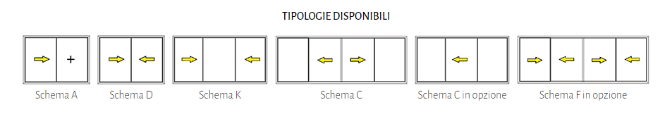Incernierato, che consente il montaggio di porte finestre a due, tre e quattro ante. Le ante, a seconda delle esigenze, possono essere non apribili o alzanti scorrevoli. La ferramenta utilizza rulli con cuscinetti a sfera e guide in teflon, grazie alle quali l’apertura e la chiusura, anche di ante di grandi dimensioni, è agevole e non richiede sforzo fisico