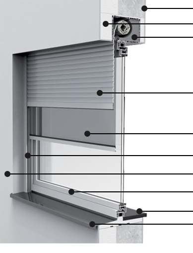 Questo sistema di cassonetto integrato è un sistema particolarmente intelligente perché fruibile sia sulle nuove costruzioni che nelle ristrutturazioni. Il cassonetto infatti viene fornito in MONOBLOCCO già pre-montato sul serramento; quindi viene inserito facilmente in muratura e viene finito ai lati con elementi leggeri di tamponatura (tipo cartongesso).